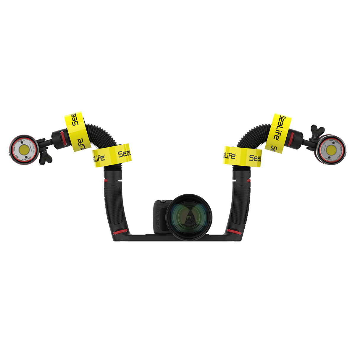 For example, a SeaLife SportDiver system with a dual tray, two grips, two flex arms, and two Sea Dragon 5000+ lights has 23 ounces of negative buoyancy. Add four float rings, and the setup becomes much lighter — just 7 ounces negative. Want it to float upright? Simply add a couple more rings for positive buoyancy.