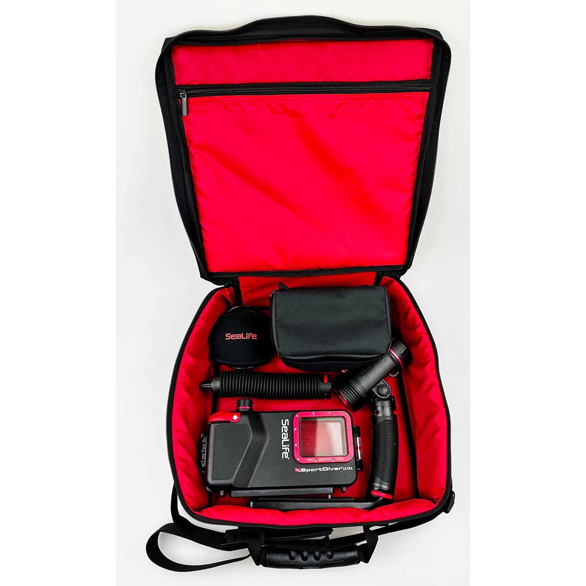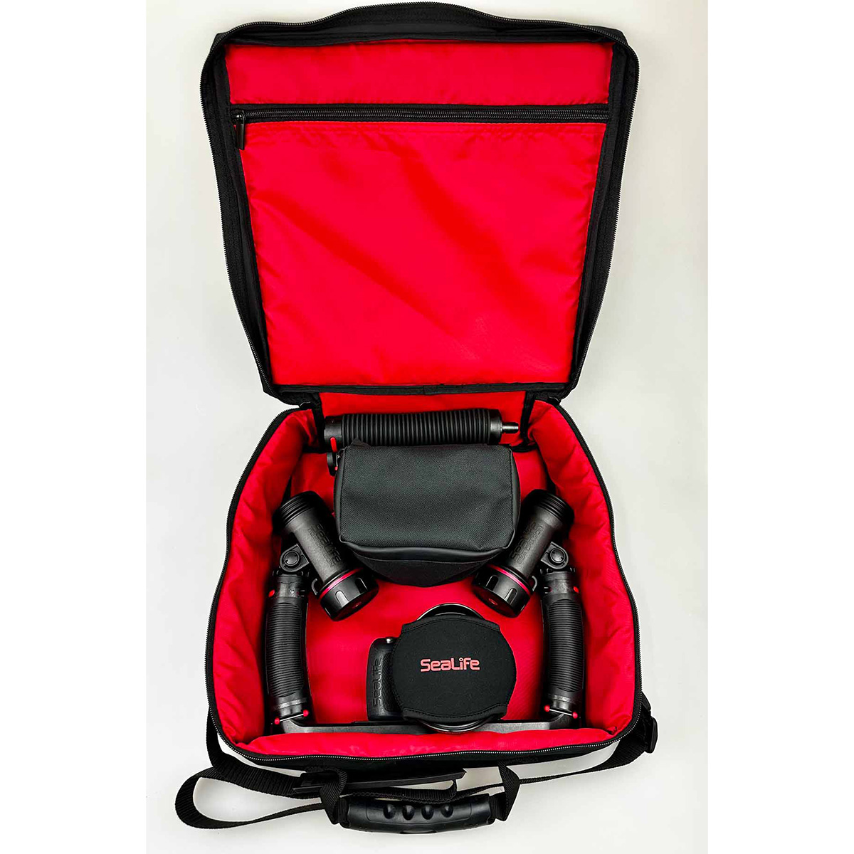 The SeaLife Pro Duo Padded Storage Case Keeps your underwater photo and video equipment safe on every adventure. The SeaLife Pro Duo Case is designed to carry and protect your SeaLife underwater camera or housing, along with two photo-video lights and additional accessories.